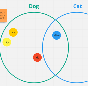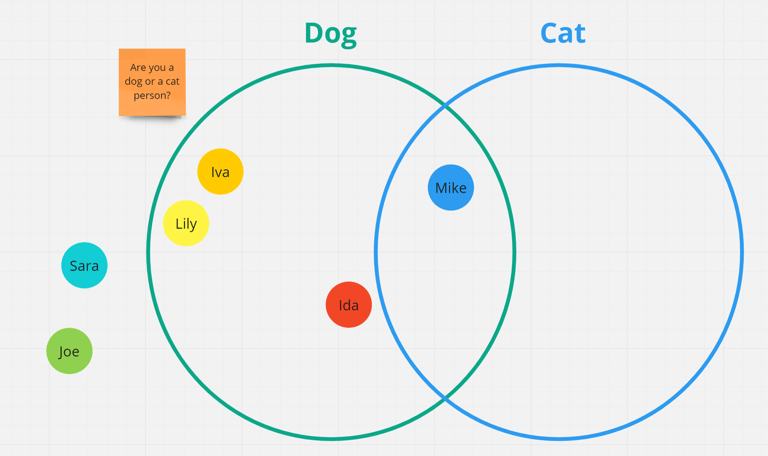 Categorize your teammates as Dog or Cat person in a Venn diagram.