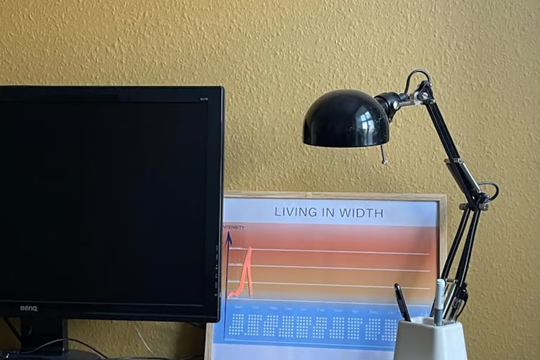 Just like astronauts in space, we experience temporal monotony when our environments and routines are unchanging. The Wide Time Calendar acts as your temporal anchor: marking moments that break the sameness and give your sense of time structure.